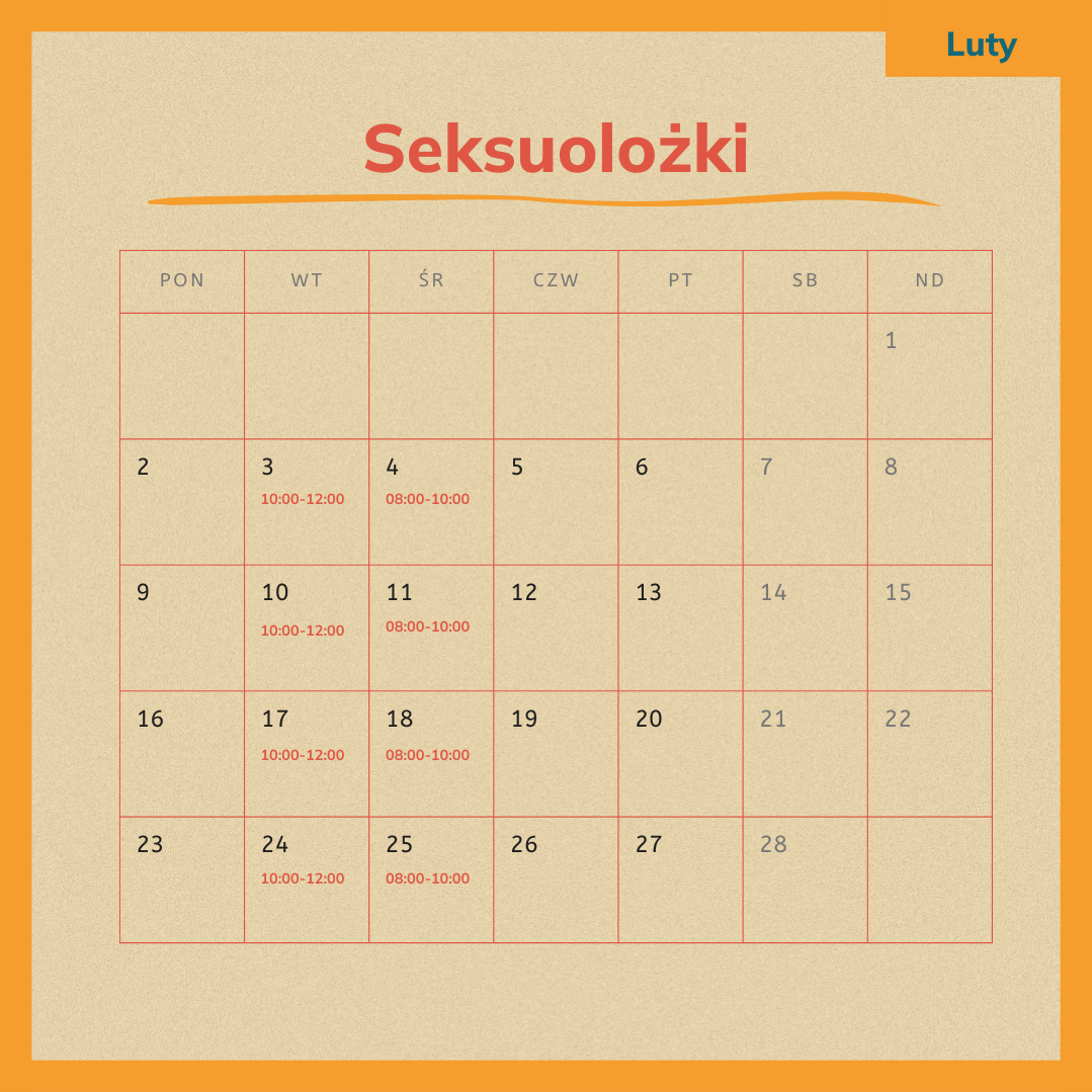 Godziny pracy specjalistek mogą się troszkę zmienić. Będziemy informować na bieżąco i aktualizować tabele na tej stronie.
